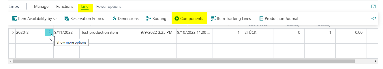 Create a new line for the created production order in the consumption journals